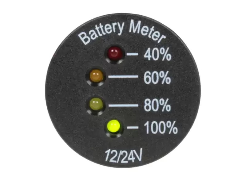 Voltmeter-Meter bei 40 %, 60 %, 80 % und 100 % der Batterien für Wohnwagen, Wohnmobile, Wohnmobile und 4x4-Überland.
