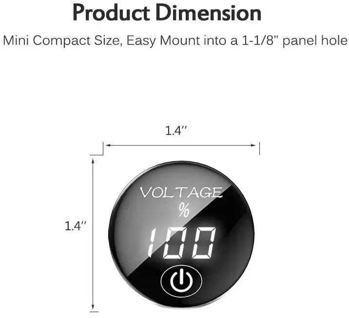 Voltmeter und Prozent 12V 5-48V mit eingebautem Schalter für Wohnwagen, Wohnmobile, Camper und 4x4 Überland. - Ref. 7-F12V-VOL1