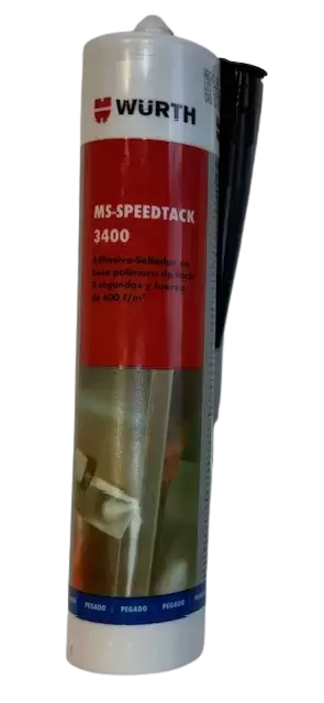 Würth Schwarzer Polymer MS-SPEEDTACK 3400 Klebedichtstoff in 3 Sekunden für Wohnwagen, Wohnmobile und Wohnmobile.
