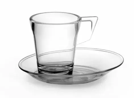 9cl Espressotasse mit sehr widerstandsfähiger transparenter Polycarbonatplatte. Geeignet für Haushaltsgeräte.
