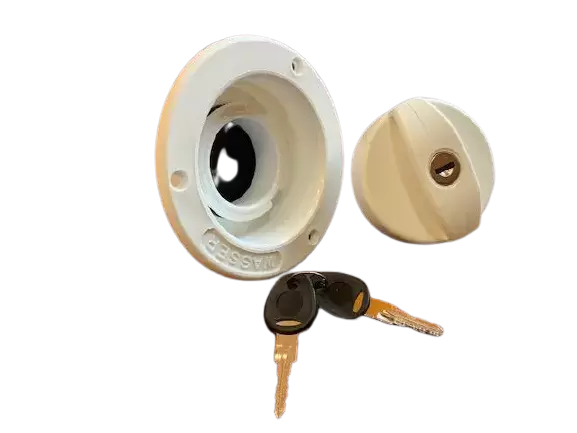 Äußerer Wasseranschluss mit weißem Stopfen für Wohnwagen, Reisemobile und Camper. - Ref. 65211