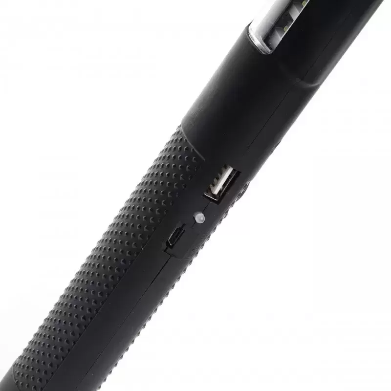 Die Taschenlampe ist mit 18 SMD-Dioden mit weißer Lichtfarbe ausgestattet. Es ist wasserdicht und wird mit Montagesockel, Netzladegerät, Autoladegerät und USB-Kabel geliefert.
