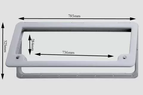 -Der Ausschnitt dient zur Integration des beweglichen Teils der Tür. Maß Ausschnitt: 736x284mm Maß Maß außen zu außen: 785 x 325 mm. weiße Farbe