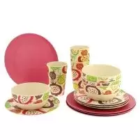 Bambus Geschirr 16 Stück Granada Dekoration Camping Caravaning - Ref. 084321
