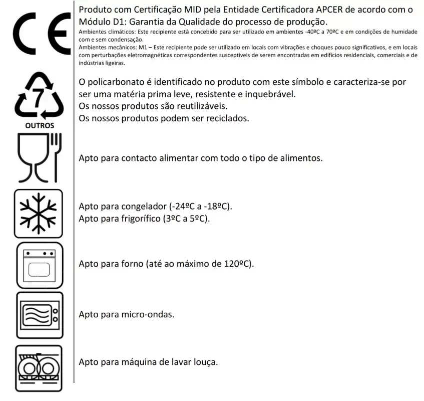 Geeignet für Gefrierschrank und Kühlschrank, für Backofen (bis 120 °C), für Spülmaschine und Mikrowelle.