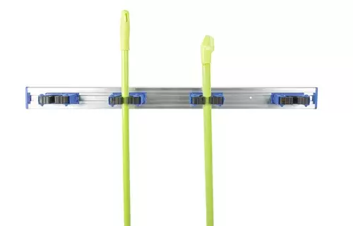 Aluminiumstange mit 4 beweglichen Kunststoffklemmen. Maximale Kapazität für Stäbe mit einem Durchmesser von 2 cm. Zum Anschrauben, inkl. Schrauben und Dübel.