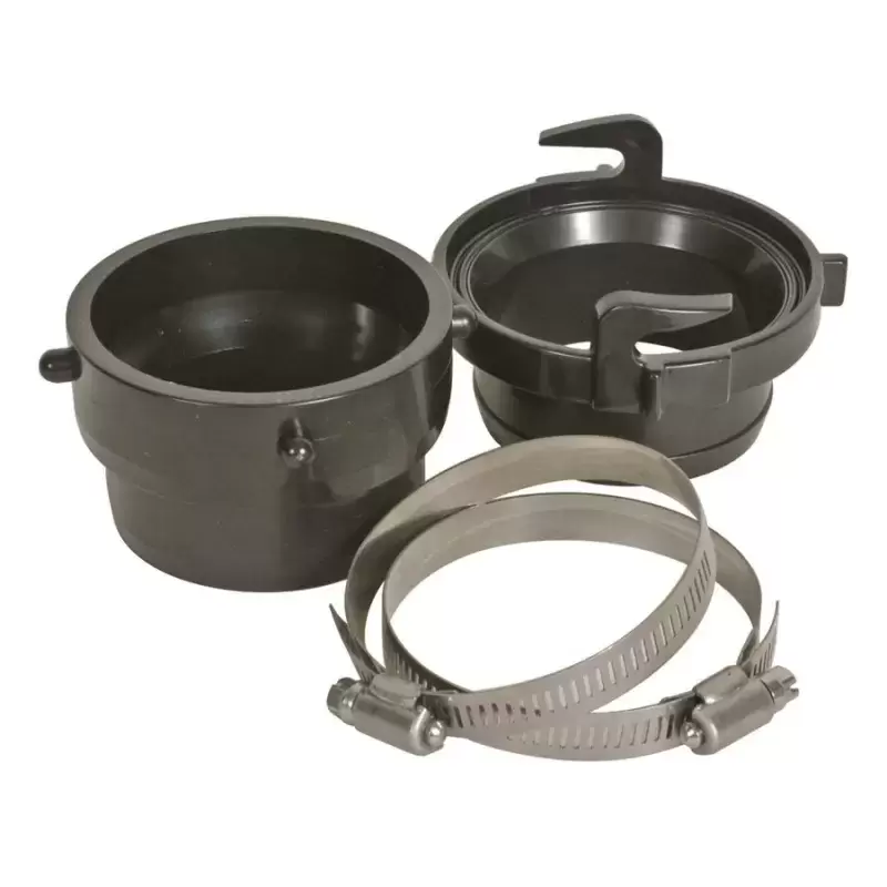 Das Kit enthält ein Bajonett und einen Kabelschuh sowie Klemmen. Passend für alle 3" Abwasserschläuche.