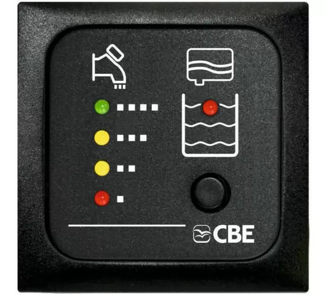 CBE-Steuergerät für Frischwasser und Grauwasser für Wassertanks in Wohnwagen, Wohnmobilen und Campern.