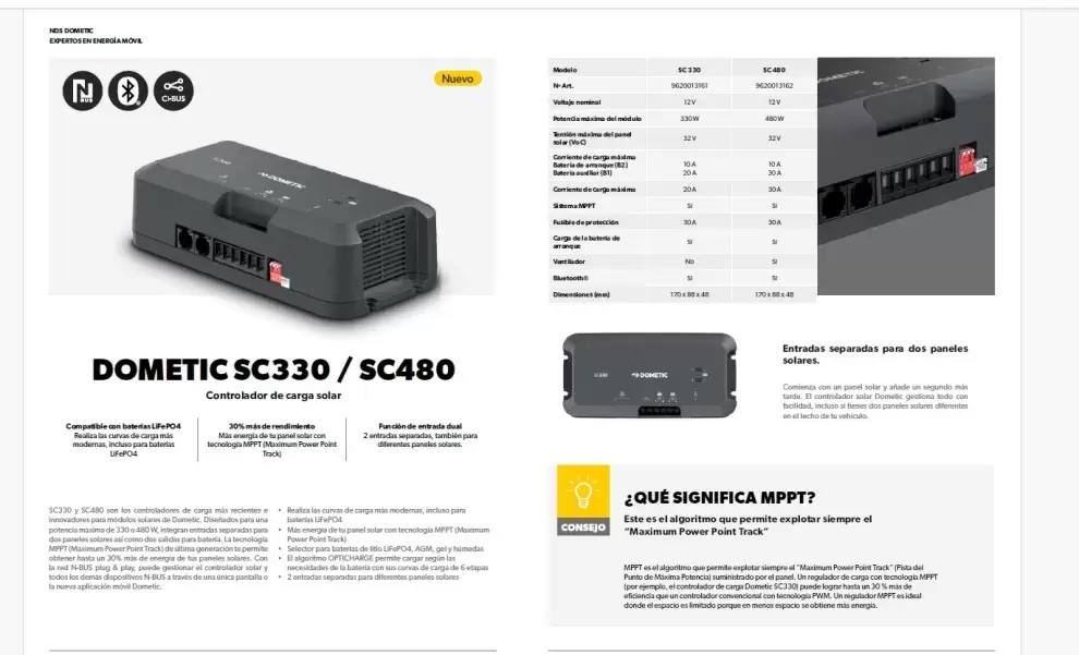 DOMETIC NDS SC480 MPPT-Solarregler für Wohnmobile und Camper.
