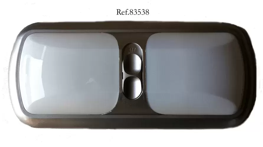 Innendeckenleuchte mit Doppellicht und silbernem Schalter.