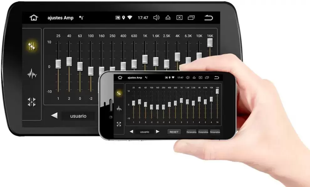 Das Modell DD800A verfügt über einen Radiotuner mit hochempfindlichem RDS und eine hohe Konnektivität zu externen Geräten: Es verfügt über einen microSD-Kartensteckplatz, 4 kompatible USB-Anschlüsse und einen weiteren microSD-Steckplatz, um Ihre eigene Navigation zu verwenden, ohne Daten aus dem internen Speicher zu verwenden, DVDs lesen , etc.