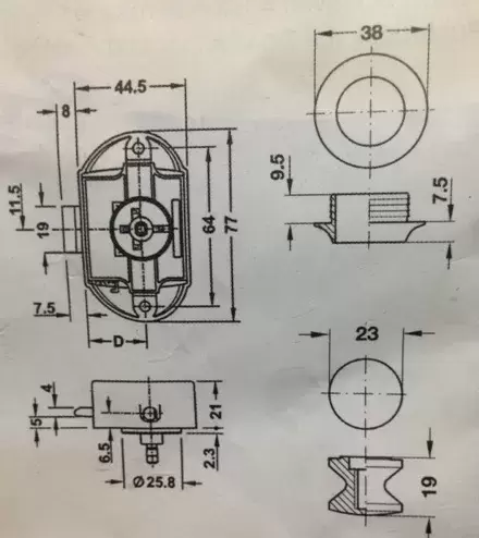 Druckverschluss mit Rosette und Mechanik in Grauweiß, Maße im beigefügten Foto.