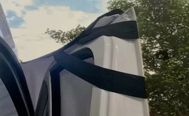 Es schützt die Karosserie, indem es Lackverschleiß verhindert. Dank der eckigen Gummibänder an der oberen Tür und am Stoßfänger ist es ein leichtes und praktisch zu montierendes Produkt.
