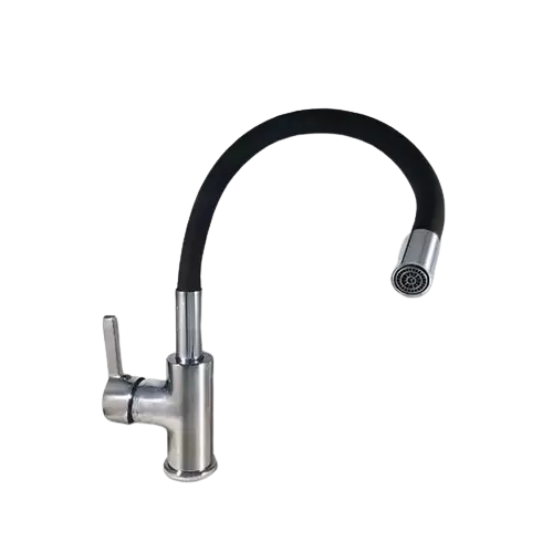 Diese besondere Mischbatterie ist mit einem schwenkbaren und flexiblen Auslauf aus PVC mit Metallkern ausgestattet, der es ihr ermöglicht, jede Form und Position anzunehmen und beizubehalten.