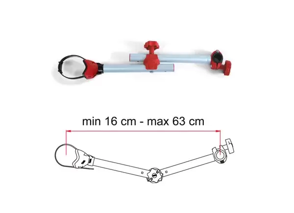 Bike Block Pro D2 mit einem Zwischengelenk, das eine Verankerung mit einem Mindestabstand von 16 cm und einem maximalen Abstand von bis zu 63 cm ermöglicht.