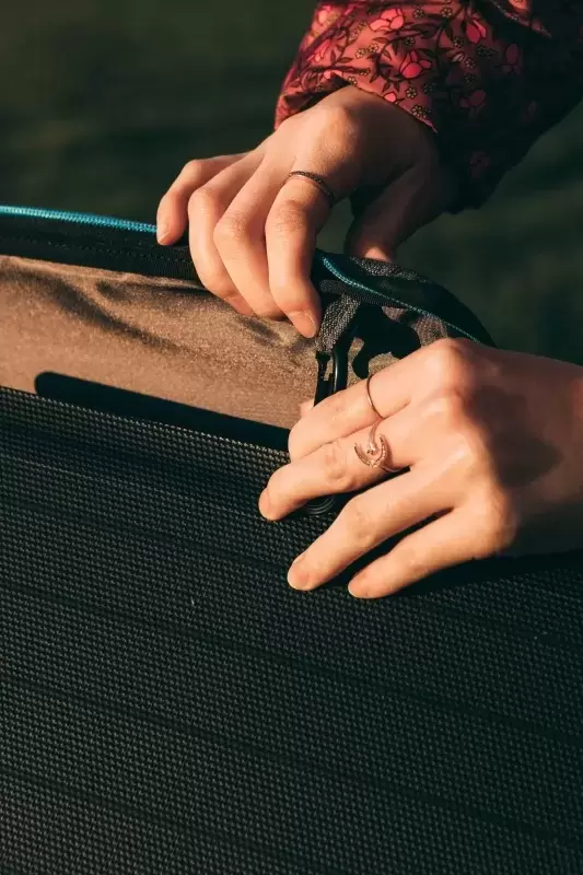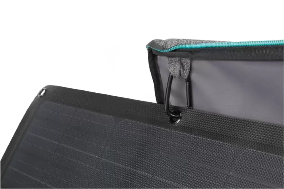 · Koffer mit Ständer. Bietet Schutz für das Solarpanel während des Transports. Die Tragetasche dient gleichzeitig als Ständer, sodass Sie das Solarmodul in jede beliebige Richtung oder Ausrichtung positionieren und mehrere Solarmodule ungehindert miteinander verbinden können.