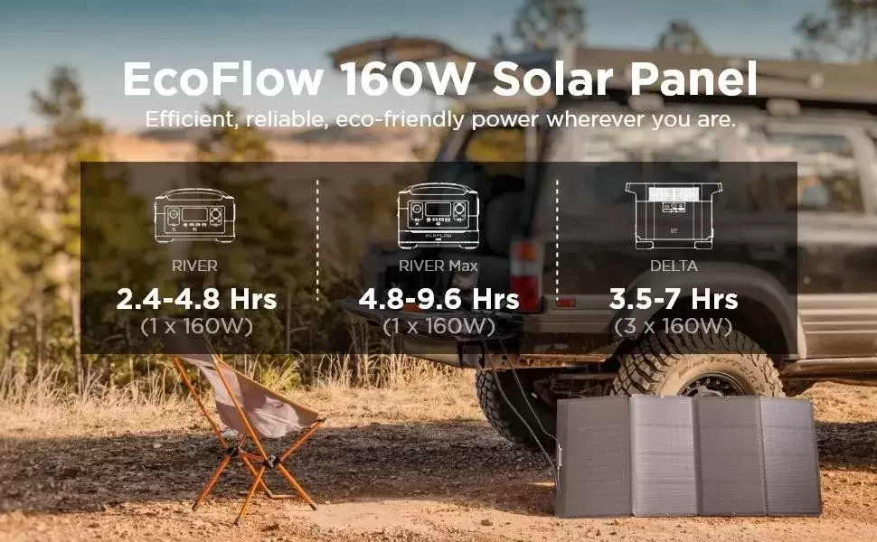 · Tragbar und faltbar. Das 160-W-EcoFlow-Solarpanel ist tragbar, faltbar und kompakt und wiegt nur 7 kg. Ob beim Camping oder bei Outdoor-Aktivitäten: Klappen Sie das Solarpanel auf und beginnen Sie in Sekundenschnelle mit der Nutzung von Sonnenenergie.