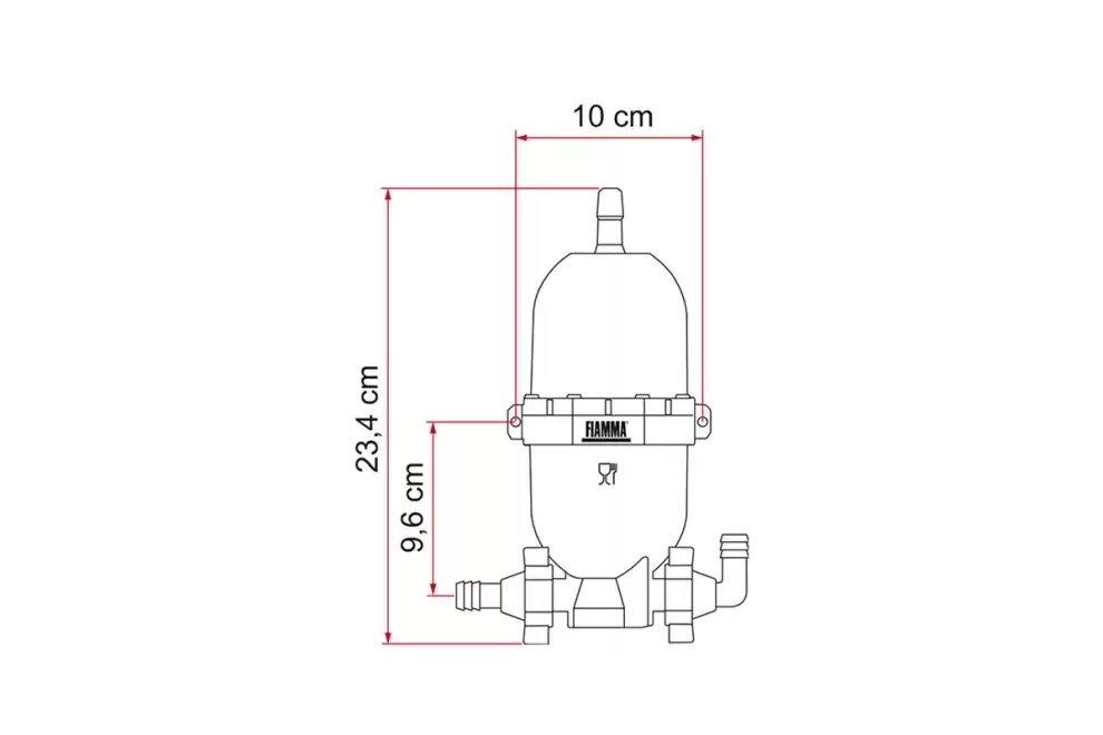 Fiamma Reisemobil-Expander für Pumpen mit Druckschalter verhindert Wasserschläge, die die Pumpe erzeugen kann, und verbessert ihre Leistung.