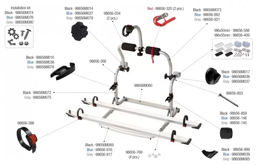 Standardmäßig für 2 Fahrräder vorgesehen, jedoch kann ein drittes Rad durch Hinzufügen einer zusätzlichen Schiene angebracht werden.