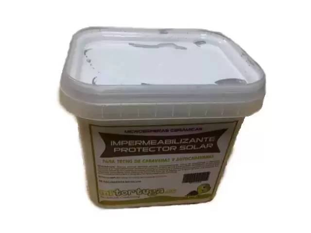 -Das Produkt wird in einem Zwei-Kilo-Behälter geliefert, der ausreicht, um zwei Anstrichschichten auf das Dach eines mittelgroßen Wohnwagens oder Wohnmobils zwischen 6 und 7 m aufzutragen.