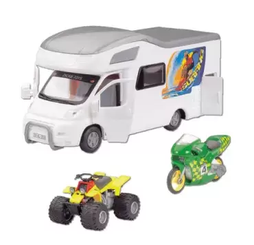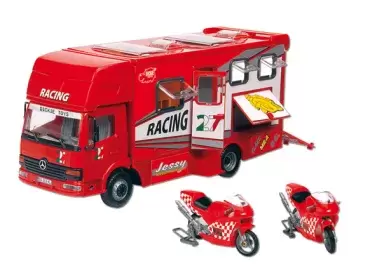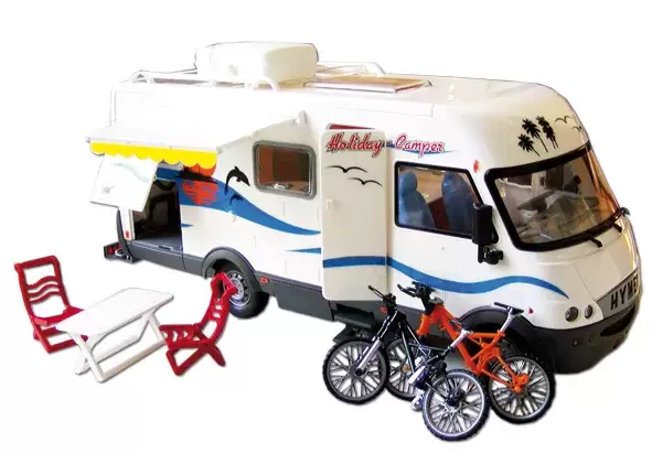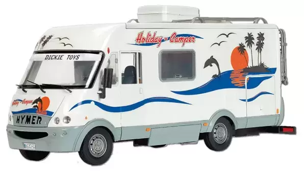 Integriertes Hymer Wohnmobil mit Friktionsmotor, mit vielen beweglichen Teilen, Türen und Fenstern zum Öffnen, mit Zubehör.