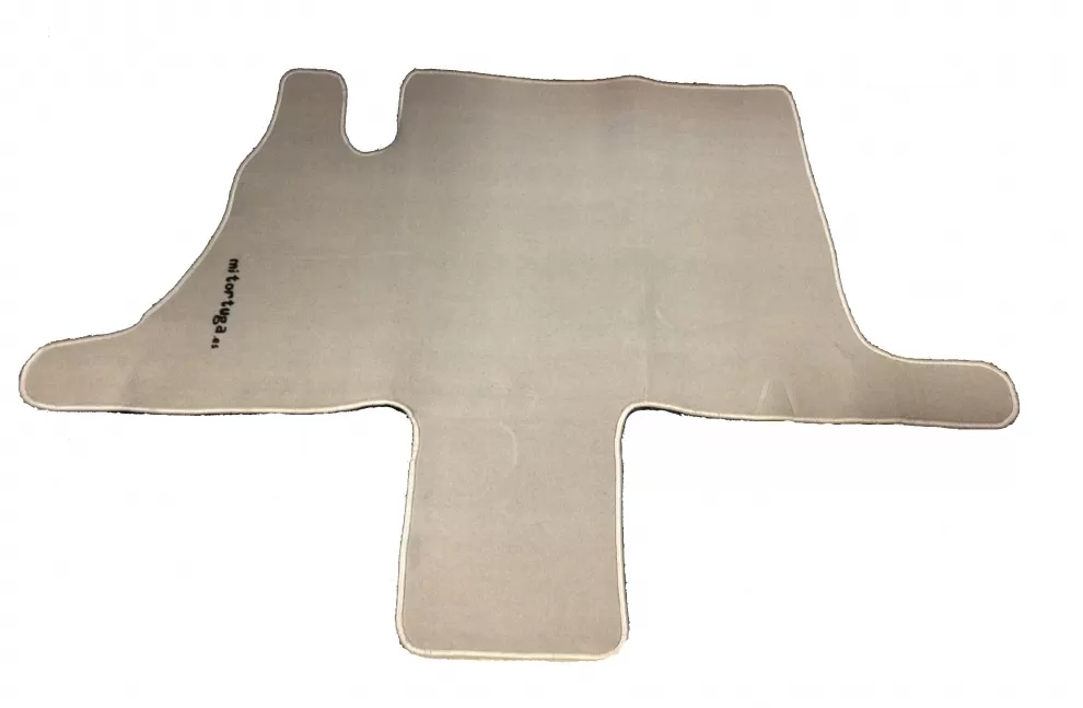 Beigefarbene Matte mit dem Mitortuga-Logo aus hochwertigem Teppich, um eine andere Note zu verleihen.