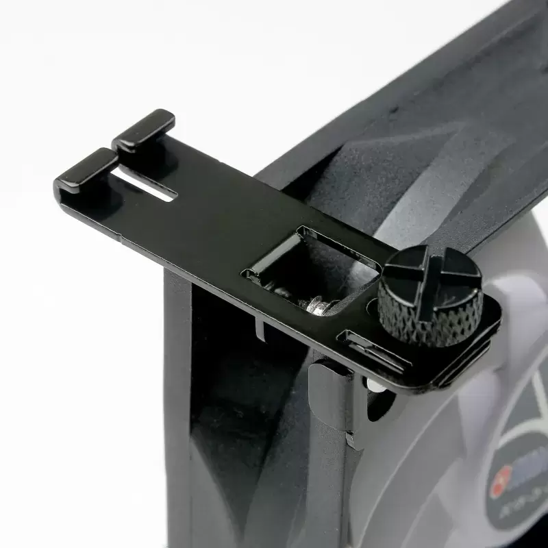 Gehen Sie in umgekehrter Reihenfolge vor, d. h. montieren Sie die Lüfterbaugruppe mit der Oberseite (die Seite mit den Aufklebern und dem blauen TITAN-Logo) nach außen, dann gelangt frische Luft in den Kühler.