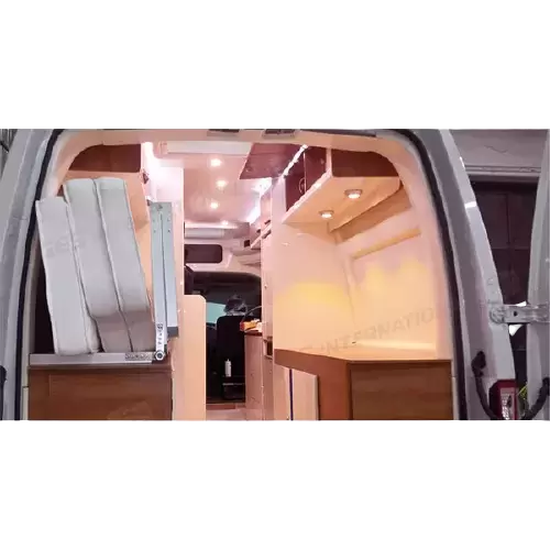 Die Betten von Wohnmobilen schränken den Innenraum stark ein, um Innenraum zu gewinnen bieten wir diesen hochwertigen Bettkasten aus Aluminium und sehr bequemen Holzlatten an.
