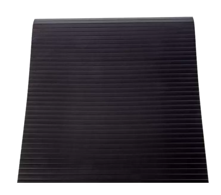 Komplettes Rolltor-Set: Führungsschienen, Rollladenmatte und Einstiegsplatte können auf die gewünschte Türgröße und Schranktiefe zugeschnitten werden.