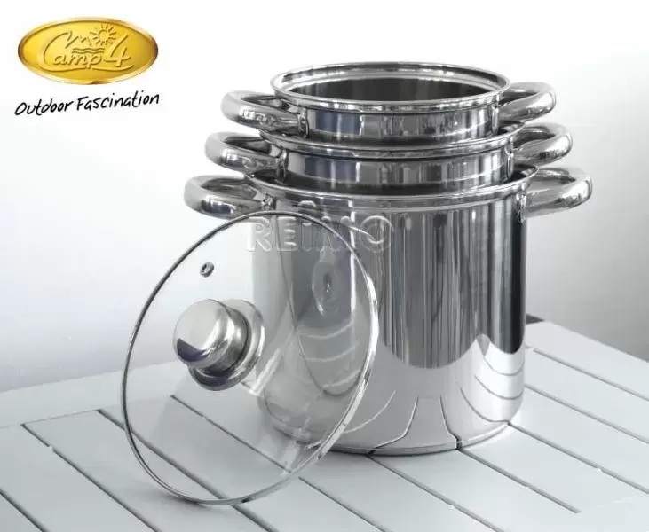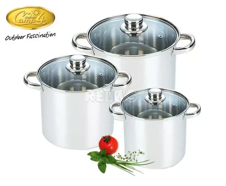 Set aus drei Töpfen für Wohnwagen- und Reisemobilküchen.