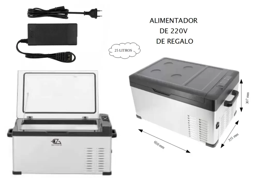 Kühlschrank mit Gefrierfach EZA 25 Liter Metallgehäuse Kompressor 12V + 220V Stecker als GESCHENK, Wohnwagen, Reisemobile, Camper und 4x4 Überland. - Ref. 522350