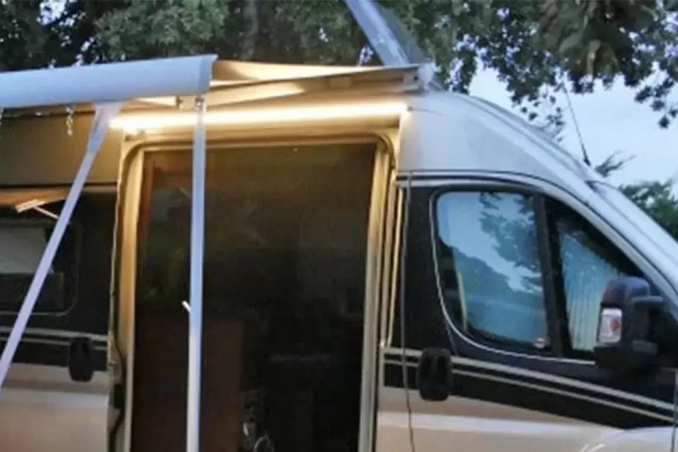Licht- und Regenrinne Viganella led 12V für Wohnmobil-Seitentüren, exklusiv für Mercedes Sprinter, wv Crafter und Man.