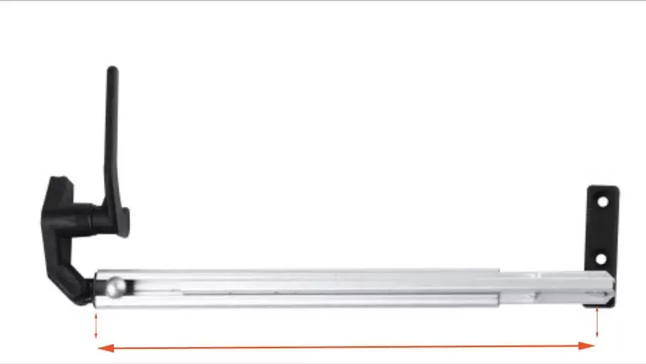*Die Messung erfolgt mit geschlossenem Kompass und genau an der Stelle, die die Pfeile auf dem Foto anzeigen, vom Anfang des Aluminiums, wo sich der Schließgriff befindet, bis zur Mitte des Lochs in der Ankerhalterung am Rahmen.