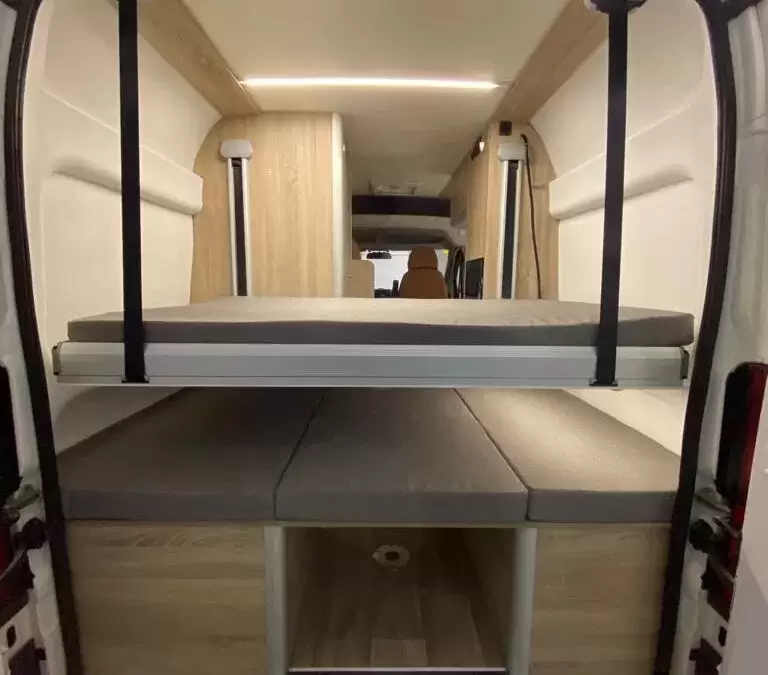 Mit dem schwebenden Bettgestell Toscana können Sie das Bett anheben und absenken, um den Innenraum optimal zu nutzen.