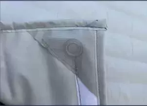 Der thermische Blackout Power Extreme ist ein revolutionäres und einzigartiges Produkt seiner Art. Der in unseren Einrichtungen untersuchte Stoff besteht aus 7 Schichten mit einer Gesamtdicke von mehr als 10 mm, ist mit grauem Marinestoff (PVC-frei) verbunden und mit einem Marineband aus 100 % Polyester versehen. Diese Zusammensetzung macht es extrem thermisch und beständig gegen alle Arten von Temperaturen, sowohl hohe (+60°) als auch niedrige (-30°) sowie Witterungseinflüsse. Daher ist es für Dauerparken geeignet und garantiert dem Stoff eine Dauerbelastung von 50.000 Stunden (5 Jahren).