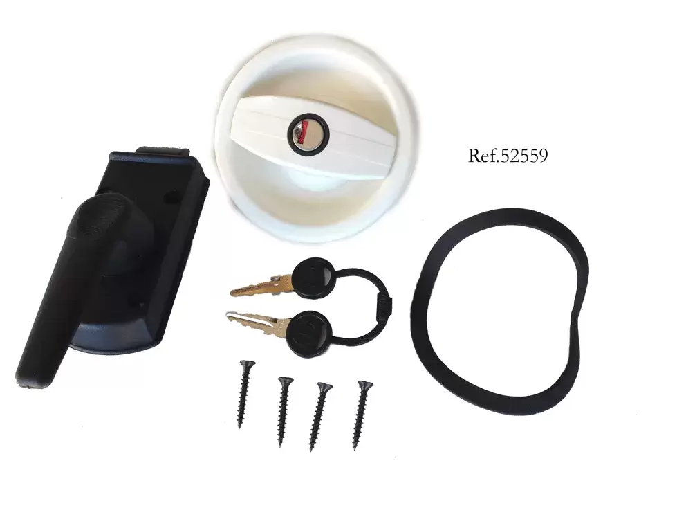 Rundes Schloss für Truhen- oder Wohnwagen- oder Reisemobiltür in Weiß.