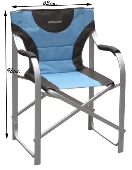 Robuster und bequemer Regiestuhl der Marke Midland mit Abmessungen von 92 cm maximaler Höhe und 63 cm maximaler Breite, aus Aluminium und 600D Polyester gepolsterter Hügel.