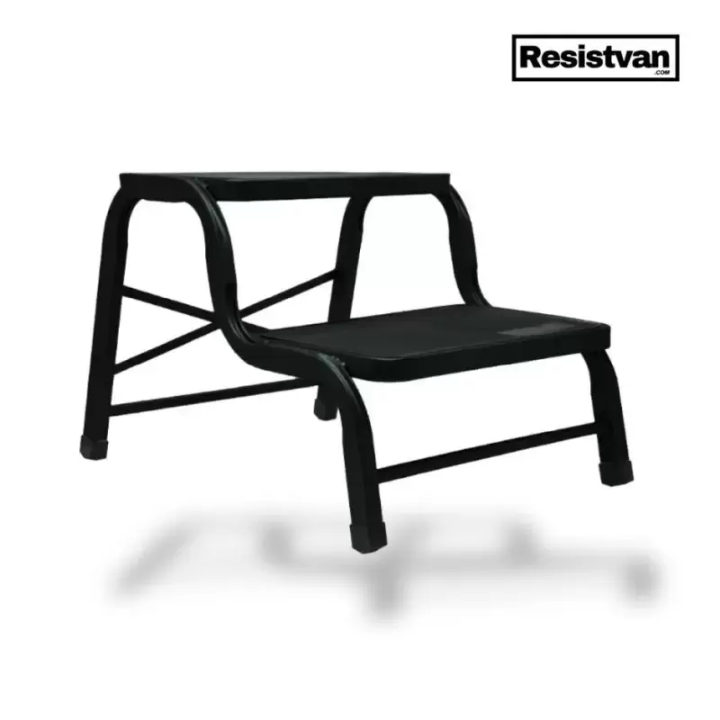 Resistvan Doppel-Metalltrittstufe in Schwarz für Wohnwagen, Wohnmobile und Camper.
