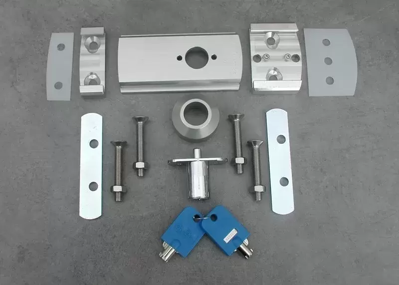 Hergestellt aus bearbeitetem und eloxiertem Aluminium mit einem Zylinderschloss aus Stahl und Schiebeschließsystem.