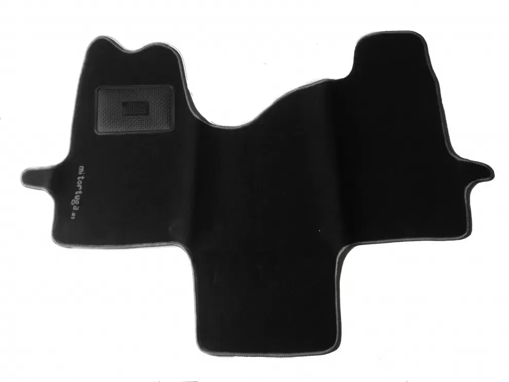 Fußmatte für Ford Transit ab 2014 mit Verstärkung für die Pedale und Mitortuga-Logo auf Qualitätsteppich.