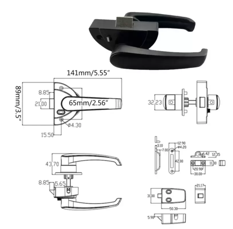 Schwarzer Griffgriffknopf für Innentüren von Wohnwagen und Wohnmobilen.