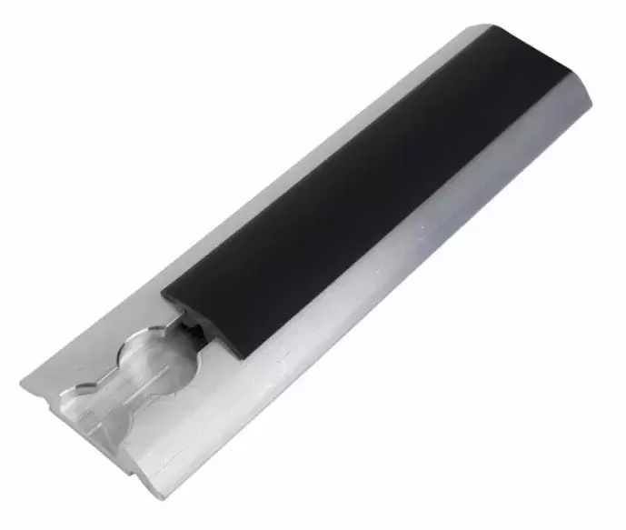 Schwarzes Abdeckprofil für Aluminium-Stangenträger mit Abstandshaltern für Wohnmobil-Anhängerhaken