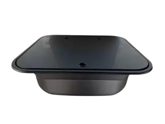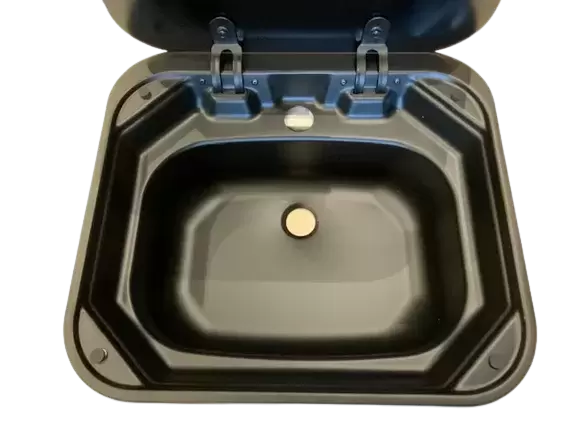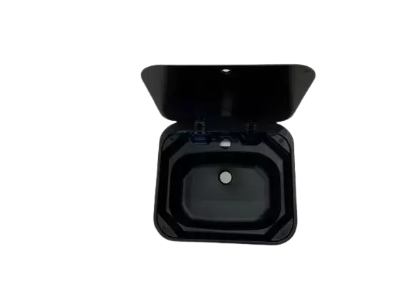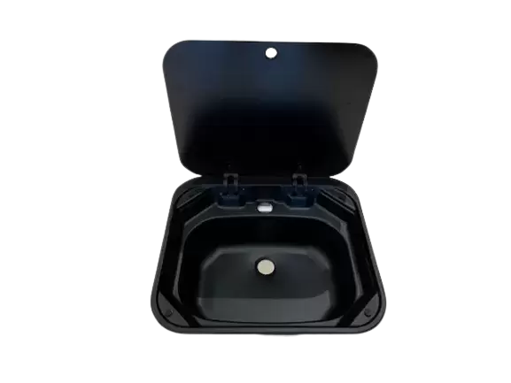 Schwarzes Waschbecken mit Glasdeckel 420x370 für Wohnwagen, Wohnmobile und Camper.