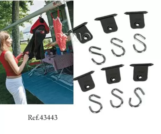 Set mit 6 Markisenhaken, die entlang der Schiene der Markisenhalterung gleiten, um Lichter, Pflanzen, Dekorationen, Kleidung usw. aufzuhängen.
