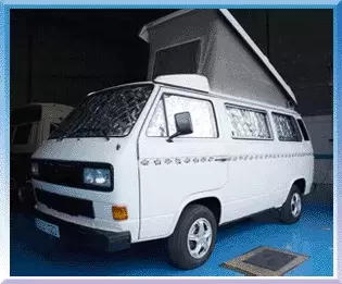 Thermorollo-Set für VW T3, bestehend aus einer Frontblende für die Windschutzscheibe, zwei Blenden für die Frontscheiben und den Saugnäpfen zur Befestigung an der Scheibe.