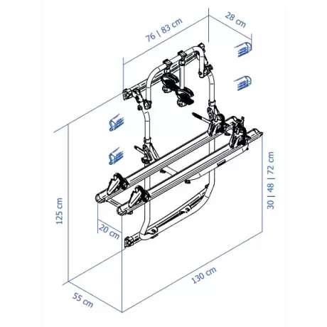 Abstand zwischen den Schienen von 20 cm, um das Aufladen von Fahrrädern zu erleichtern