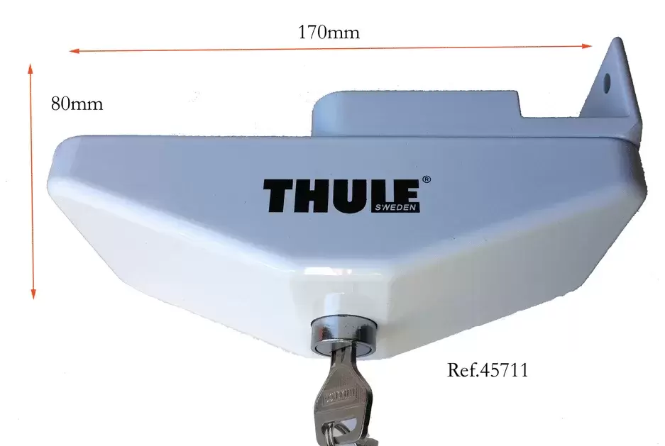 Sicherheitsschloss für Thule Haustür, Befestigung am Eingangsrahmen und Schiebeverschluss.