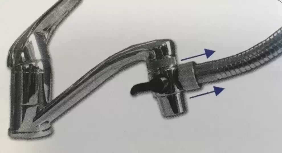 Innovativer Wasserumsteller, ausgestattet mit einem Miniventil vom Typ 1/2" F, mit dem Sie den Schlauch mit der Handbrause verbinden können.