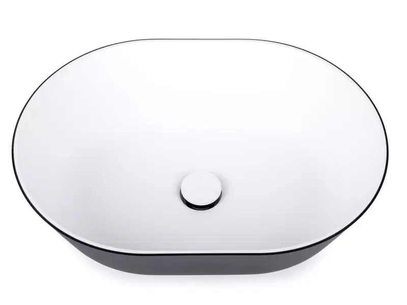 Weiß/schwarzes Waschbecken mit ovaler Oberfläche 354 x 260 mm für Wohnwagen, Wohnmobile und Wohnmobile. - Ref. 64061