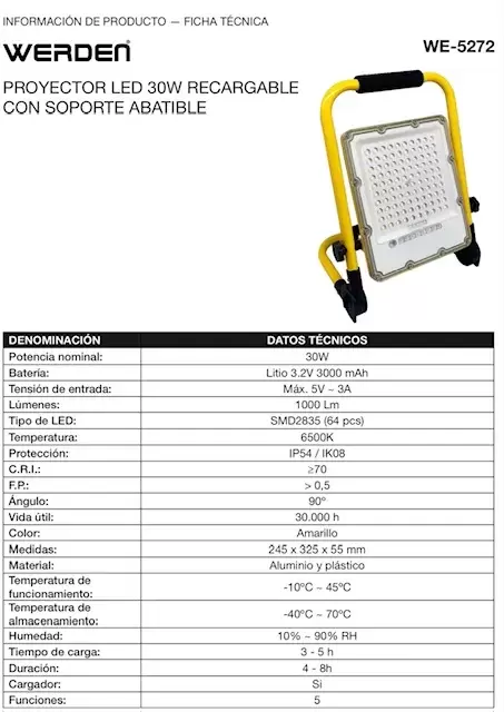 Wiederaufladbarer 30-W-LED-Scheinwerfer mit LiFePO4 3,2-V-Lithiumbatterie, klappbarer Halterung, Mehrzweck-, Camping-, Caravaning- und 4x4-Überlandscheinwerfer.